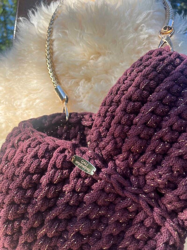 Farbe: burgund mit Goldfaden, Makramee Garn, Premium Kordel